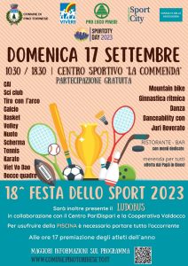 Presso gli impianti sportivi comunali della zona della Commenda di via Valle Miglioretti 28, domenica 17 settembre dalle ore 10.30 alle ore 18.30, sarΓ possibile immergersi in una giornata di sport e conoscere le associazioni del territorio, scoprendo e provando varie discipline sportive.