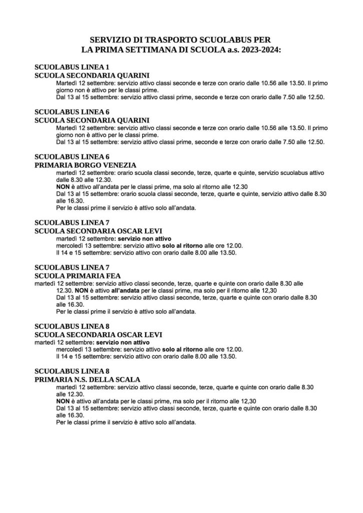 Chieri. Scuolabus: ecco gli orari per la prima settimana di scuola di Redazione · 12 Settembre 2023 Visto da: 245