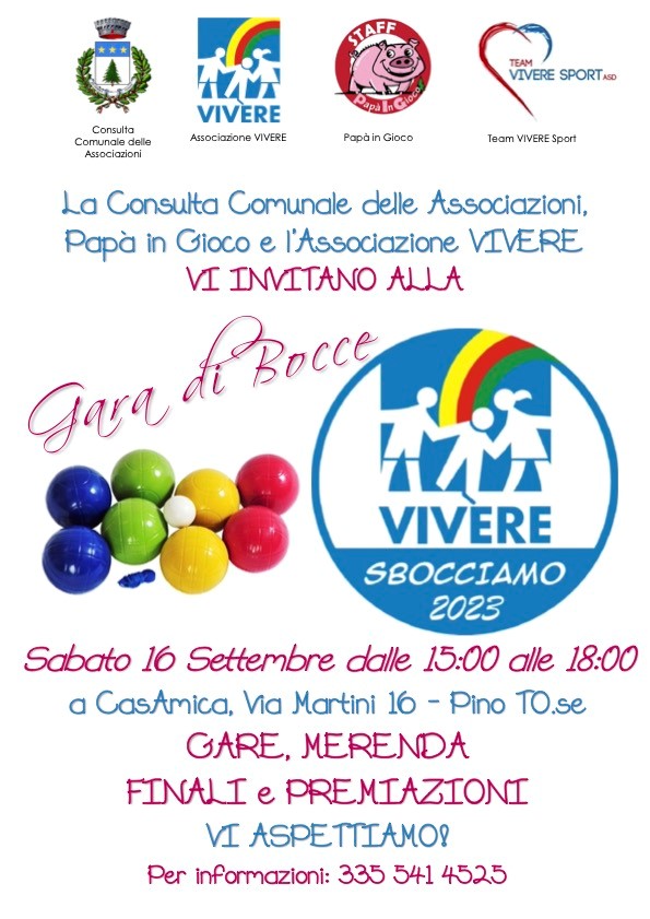 Una gara di bocce con merenda e premiazioni si svolgerà in via Martini 16 a CasAmica dalle ore 15 alle ore 18 di sabato 16 settembre.