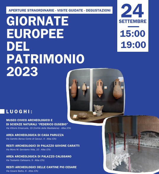 In occasione delle Giornate Europee del Patrimonio 2023 – “Patrimonio InVita”, domenica 24 settembre ad Alba sono previste aperture straordinarie, visite guidate e degustazioni in alcune aree archeologiche cittadine.