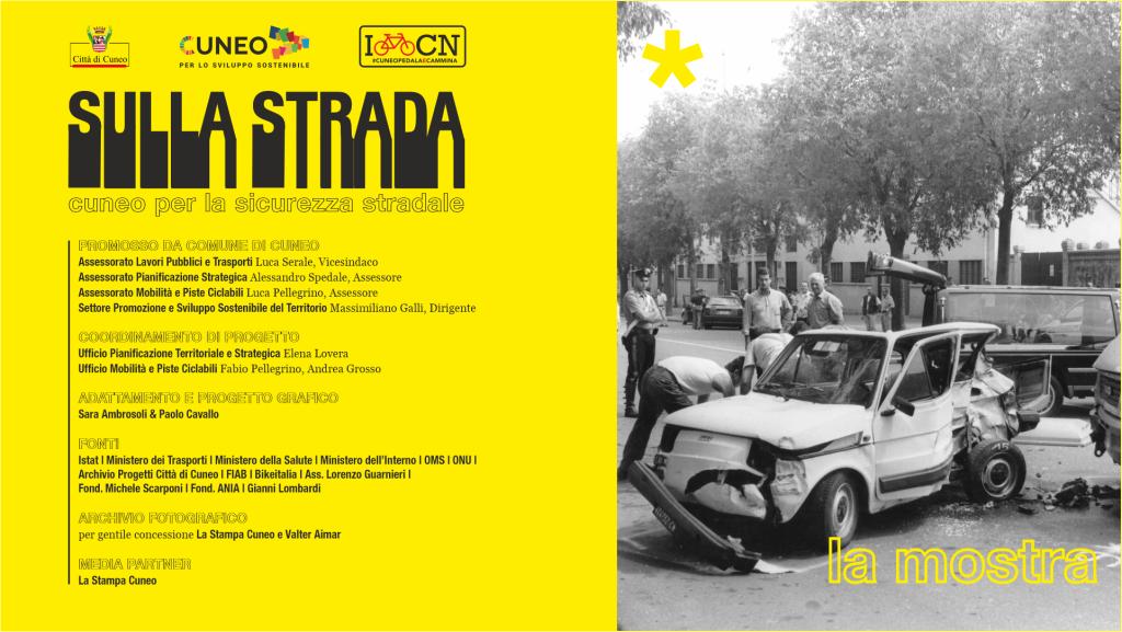 La mostra “Sulla strada. Cuneo per la sicurezza stradale” sarà visitabile negli spazi della Prefettura dal 20 settembre fino al 6 ottobre (nei giorni feriali tra le 10 e le 12; dalle 15 alle 18:30. San. Michele / sabato / domenica: chiuso). A partire dal 9 ottobre sarà allestita alla Casa del Fiume. Le scuole, i comitati di quartiere e frazione e tutti gli enti interessati, potranno richiedere di ospitare i pannelli dell’esposizione nelle loro sedi, contattando il numero 0171.444523 o scrivendo a ufficio.biciclette@comune.cuneo.it (Piazza Torino n. 1 12100, Cuneo)
