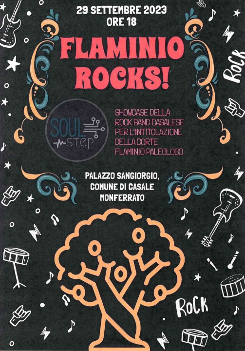A Casale Monferrato venerdì 29 settembre alle ore 18:00 presso il cortile principale di Palazzo San Giorgio, concerto della band giovanile “Soul step” in occasione dello svelamento della targa posta in memoria di Flaminio Paleologo, Patriota Monferrino (1518 – 1571).