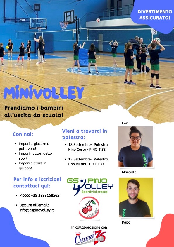 Contattando i riferimenti sulla locandina si può avere l’opportunità di provare gratuitamente il minivolley grazie alla disponibilità degli allenatori del Gs Pino Volley.
