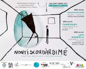 Il 30 settembre ad Agliano si terrà la 2^ edizione del Festival “Nontìscordàrdimé”, dedicato alle arti contemporanee, performative e alla poesia, in memoria di Ivan Fassio. Poeta, performer, scrittore, curatore artistico, ideatore e creatore di Spazio Parentesi: libero luogo di esposizione, condivisione e presentazione di progetti artistici e letterari contemporane. Ha proposto l’evento, in collaborazione con le associazioni aglianesi BarberaAgliano e Bianca Lancia 4.0, ospitato negli spazi di BAart e del Wine Bar la Dolce Vigna, a ingresso libero, con il sostegno e il patrocinio del comune. “Nontìscordàrdimé” è un evento il cui nome prende spunto dall’ultima raccolta di poesie pubblicata postuma di Ivan Fassio, nato ad Agliano e artisticamente attivo su tutto il territorio piemontese, in particolare a Torino, con frequenti collaborazioni tra Milano, Genova, Bologna. A Torino Ivan gestiva Spazio Parentesi, un flusso di coscienza, nomade o stanziale, per la libera espressione delle arti contemporanee e della poesia. Proprio da questa sua dedizione e cura, nasce l’idea di creare un evento che dia spazio alle arti, non solo in ricordo del suo lavoro artistico, ma anche in continuità con esso. Un modo per tenere viva la sua visione e il suo lavoro, affinchè possa continuare a germinare ed evolversi anche in sua assenza. Per questa 2^ edizione, Il programma prevede: alle 18:30 in piazza San Giacomo la presentazione della 1^ edizione del “Premio Ivan Fassio” per il 2024. Durante l’evento, verrà inoltre svelato un nuovo murale, che sarà realizzato dall’artista Francesco Levi, ispirato ad una poesia di Fassio dalla raccolta “Nontìscordàrdimé”, così come fece nel 2022 Marco Memeo. Il pittore/ illustratore Levi fa da testimonial del Premio, che darà la possibilità agli artisti partecipanti di poter donare un murale ad Agliano e realizzare una mostra personale entro il 2025. Successivamente, alle 19, BAart ospiterà una performance di videoarte live dei Fannidada, in dialogo con le poesie di Fassio. Il duo torinese creerà un’esperienza magica e coinvolgente, utilizzando immagini in movimento- Una selezione di brani con la voce indelebile di Ivan, fa da traccia ai video delle performance rielaborate, sulle quali il duo improvvisa e interviene per un risultato magico e immersivo. Infine alle 21 sulla terrazza del Wine Bar la Dolce Vigna, si terrà un concerto di Fabio Dondelli, accompagnato dal live painting di Levi. Questi due artisti di Brescia intrecceranno i loro linguaggi diversi, combinando parole, musica e immagini in un’esperienza di poesia in movimento. Gli organizzatori commentano: ”Anche questa volta abbiamo puntato tutto sulla magia della performance dal vivo, dell’immateriale, dell’estemporaneo. È tutto nelle mani dei Fannidada, di Francesco Levi e di Fabio Dondelli, con fiducia in quello che ancora non esiste e nei residui emozionali che questo incontro lascerà. Non perdetevelo! Evviva tutte le occasioni per parlare delle opere di Ivan, per raccontarlo, per farlo conoscere, per portare le sue parole e la sua voce, in ogni angolo del mondo!”. La realizzazione del Festival è stata possibile anche grazie al supporto delle attività del territorio che hanno sponsorizzato l’iniziativa: azienda vitivinicola Dacasto Duilio, tenuta Garetto, villa Susti e cascina Tre Botti.