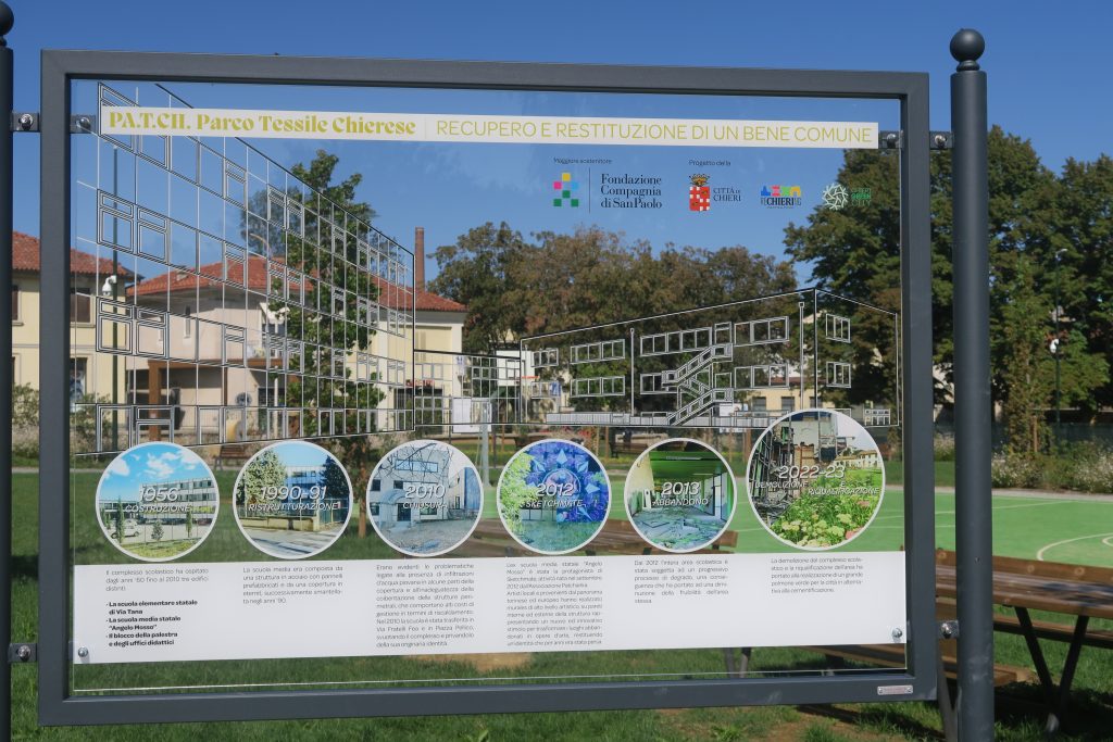 Lo scorso mercoledì 20 settembre, presso l’area Caselli è stato inaugurato il PA.T.CH. – PARCO TESSILE CHIERESE: un’area polivalente realizzata dal Comune di Chieri in collaborazione con la Fondazione Chierese per il Tessile e per il Museo del Tessile, che oltre ad offrire  nuovo verde, giochi per i bambini e spazi per vari sport, con espedienti diversi rievoca il passato chierese di importante città del Tessile.