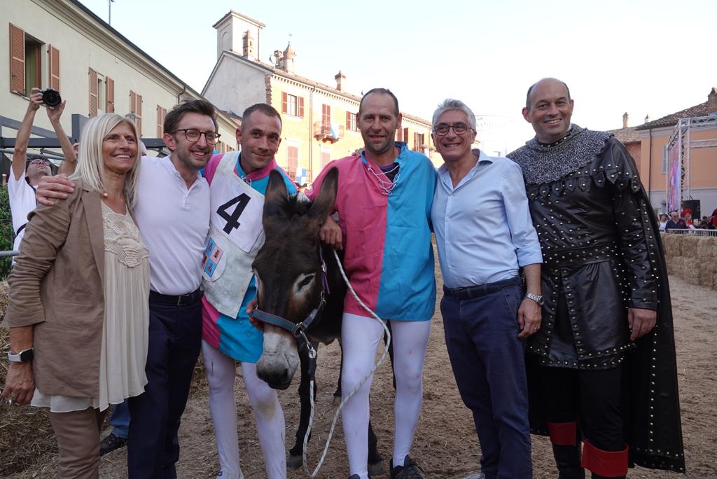 La giornata è cominciata con gli oltre mille figuranti dei nove borghi albesi della Giostra delle Cento Torri confluiti in piazza Ferrero per la tradizionale sfilata per le vie del centro storico. Poi la corsa: dopo due batterie, è andata in scena la finale in cui a tagliare il traguardo sono stati l’asino e il fantino dei Brichet con il numero 4. Il borgo è in testa alla classifica generale con ormai 14 vittorie, di cui queste ultime due consecutive. Con la fantina numero 9 si è aggiudicato anche la seconda batteria associata alle Città Gemelle facendo vincere la città Beausoleil.