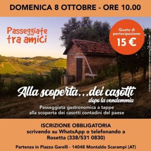 A Montaldo Scarampi prende il via la camminata gastronomica tra i filari alla scoperta dei casotti
