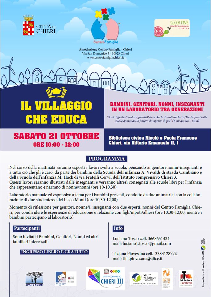 Chieri. Centro Famiglia: sabato 21 ottobre “Il villaggio che educa” di Redazione · 4 Ottobre 2023 Visto da: 115