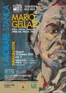 Continua la programmazione dello spazio espositivo temporaneo “ApARTE” allestito negli spazi un tempo commerciali di via Torino 87 a Brandizzo. Dopo la mostra fotografica dedicata al Kurdistan con le opere di Saverio Colella, dal 12 ottobre aprirà al pubblico un allestimento dedicato al pittore ed incisore torinese Mario Gellato, scomparso nel 1995. Grazie alla possibilità di esporre i suoi lavori e gli strumenti di lavoro di una vita, MEMO Documenti visivi, in collaborazione con l’Università delle Tre età Brandizzo propone un percorso cronologico tra le sue opere dal 1965 al 1987. In esposizione incisioni, principalmente acqueforti, che permettono di cogliere l’immaginario e l’iter artistico di Gellato. Uno spazio a parte è dedicato all’opera pittorica, olio e tempera, in cui l’artista riesce a trasmettere la stessa intensità del segno grafico inciso grazie alla scelta dei colori. Da segnalare “Lavorare stanca”, la più significativa fra le opere di Gellato presenti in mostra e che dà il titolo al progetto espositivo. Qui l’artista sceglie la tecnica dell’acquatinta per riprodurre il paesaggio collinare langarolo descritto nelle poesie di Pavese, di cui si proporranno alcuni estratti letterari per accompagnare il visitatore in una visita completa e coinvolgente.