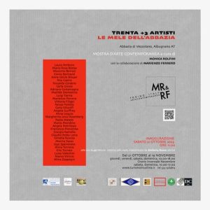 Sabato 21 ottobre, nell’Abbazia di Vezzolano – Albugnano AT, si inaugura la collettiva TRENTA + 3 ARTISTI. LE MELE DELLA’ ABBAZIA, curata da Monica Rolfini per MR&RF Arte Contemporanea Torino, in collaborazione con Marienzo Ferrero. Ispirati dal frutteto adiacente a Santa Maria di Vezzolano, attraverso diversi linguaggi artistici racchiusi in identiche cornici, in un contesto storico originale, tra passato e presente, 32 artisti hanno interpretato il frutto ed il luogo che li accoglie. Alle ore 11.30 in occasione dell’inaugurazione lettura intorno alle mele a cura dell’attrice Stefania Rosso.