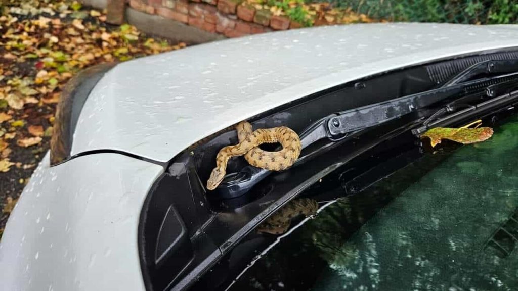 Chieri. Un serpente sul cofano dell’auto