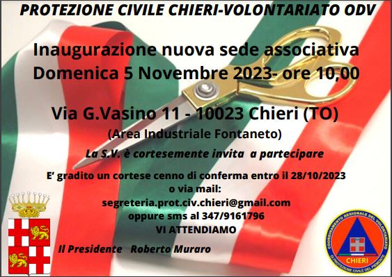 Chieri. Inaugurazione della nuova sede della Protezione Civile di Redazione · 25 Ottobre 2023 Domenica 5 novembre nell’area industriale Visto da: 236