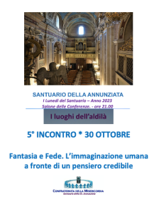 Lunedì 30 Ottobre alle ore 21 si conclude il ciclo de I Luoghi dell’Aldilà al Santuario dell’Annunziata di Chieri, condotto dal Rettore Don Gianni Sacchetti. Tema della serata: Fantasia e Fede. L’immaginazione umana a fronte di un pensiero credibile.