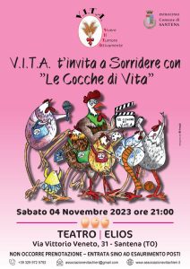 L’Associazione V.I.T.A. è lieta di invitarvi allo spettacolo “Le Cocche di V.I.T.A.” che sarà presentato presso il Teatro Elios di Santena il 4 novembre 2023 alle ore 21.