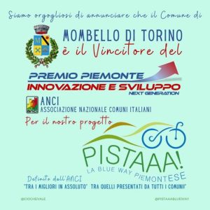 L’ANCI -Associazione Nazionale Comuni Italiani ha assegnato a Luciana Picogna, sindaca di Mombello, il premio “Innovazione e Sviluppo” al Comune di Mombello , per il progetto Pistaaa: La Blue Way Piemontese, definito dall’ANCI “tra i migliori in assoluto” tra quelli presentati da tutti i Comuni!
