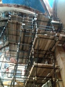 Michelangelo Varetto e le sue collaboratrici proseguono nell’opera di restauro della cappella del Corpus Domini del Duomo, sulla cui volta, come è noto, gli stucchi e gli affreschi sono stati gravemente compromessi da ripetute infiltrazioni di acqua. “Stiamo concludendo la prima fase dei lavori – precisa Michelangelo – che sono consistiti nel mettere in sicurezza, tramite il consolidamento dell’intonaco, le parti cadenti sia degli affreschi che degli stucchi. Entro un mese questa fase dovrebbe arrivare a conclusione”. La Soprintendenza ha approvato anche la seconda fase dei lavori, “che consisteranno – prosegue Varetto – nella ricostruzione delle parti mancanti, per quanto riguarda sia i dipinti che gli stucchi”. Perciò andremo avanti senza interruzioni”.