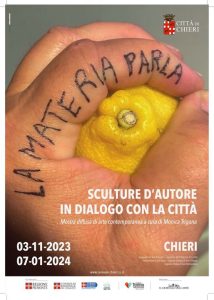 Con la mostra “La materia parla. Sculture d’autore in dialogo con la città”, curata da Monica Trigona, si coglie in cinque prestigiosi spazi espositivi di Chieri il clima e gli aspetti della scultura italiana tra Novecento e nuovo Millennio.