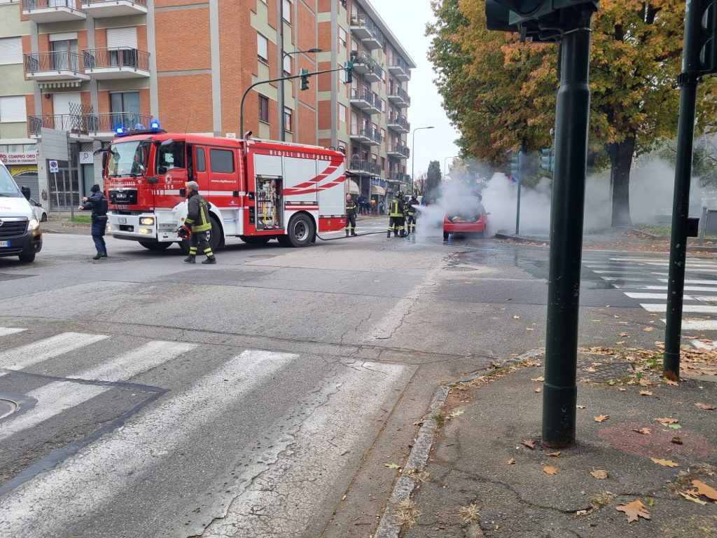 Chieri. Auto in fiamme all’incrocio per Pecetto