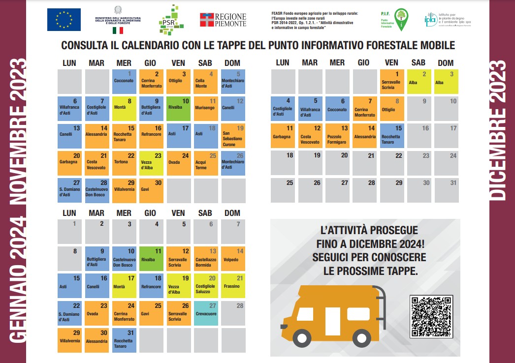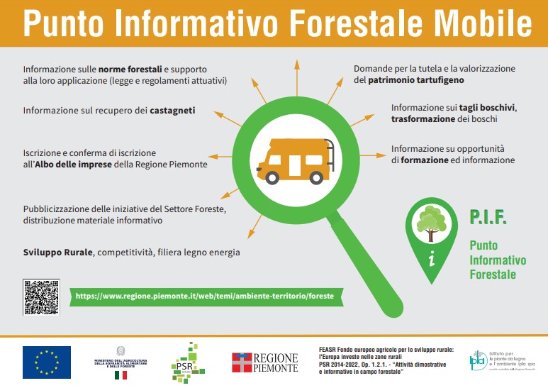 Riparte il camper dello sportello forestale itinerante: fino al 31 gennaio oltre 60 tappe in 35 Comuni del Piemonte per dare informazioni sulle norme forestali, sul recupero dei castagneti, sull’iscrizione e conferma di iscrizione all’Albo delle Imprese, sulle iniziative del settore foreste, sulle domande per la tutela e la valorizzazione del patrimonio tartufigeno, sui tagli boschivi e trasformazione dei boschi e sulle opportunità di formazione ed informazione. E’ un’iniziativa del settore Foreste della Regione, in collaborazione con IPLA.