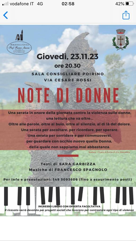 Poirino. “Note di donne”, una serata contro la violenza di genere di Redazione · 17 Novembre 2023 Visto da: 160