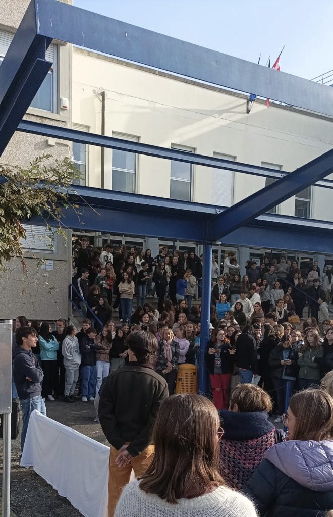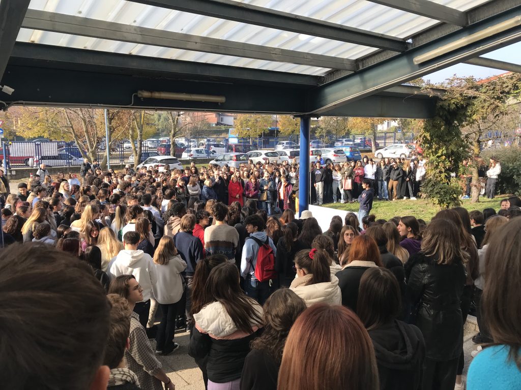 Nel corso della breve cerimonia che si è svolta nel cortile del liceo, durante l’intervallo di mezzogiorno, si sono dati appuntamento almeno quattrocento studenti e alcuni insegnanti. Il preside, Gianfranco Giusta, ha rivolto ai ragazzi un invito ad accettare e superare qualsiasi tipo di fallimento, dalle situazioni amorose, agli insuccessi scolastici o professionali. L’insegnate di religione, Daniela Abbatini, e tre studentesse di quinta hanno letto alcuni brani significativi. Terminati gli interventi, gli studenti hanno osservato un minuto di silenzio che si è trasformato in un minuto di rumore collettivo, come avrebbe voluto Elena, la sorella di Giulia Cecchettin: i ragazzi hanno battuto le mani, fischiato, urlato e fatto suonare le chiavi.