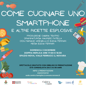 Lo spettacolo è stato prodotto da Cabiria Teatro grazie al progetto “Stagelife. Il palcoscenico della vita” sostenuto da Fondazione Cariplo che, dopo il successo di “Romeo e Giulietta Opera Ibrida”, “In macchina” e “Amleto principe dei palazzi”, si concluderà proprio con lo spettacolo per bambine e bambini di domenica dal titolo “Come cucinare uno smartphone. E altre ricette esplosive.”