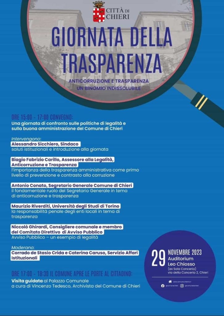 Chieri. Giornata della Trasparenza. Un convegno e ‘porte aperte’ di Redazione · 29 Novembre 2023 Visto da: 108