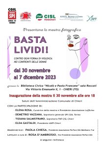 CHIERI. SI INAUGURA IL 30 NOVEMBRE LA MOSTRA “BASTA LIVIDI”