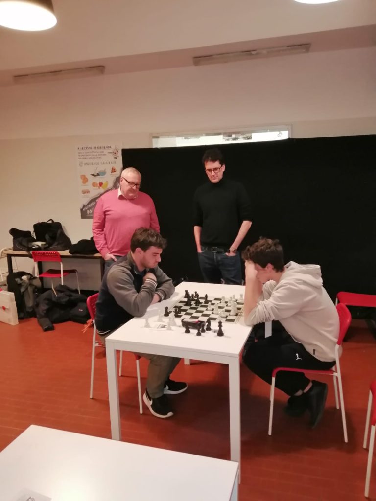 Ogni anno il MIUR e la Federazione Scacchistica Italiana (tramite il CONI) organizzano il campionato italiano a squadre delle scuole, denominato Trofeo Scacchi Scuola (TSS). Quest’anno, per la prima volta a Chieri e grazie alla collaborazione con l’ASD Arcotorre Scacchi, il Liceo Augusto Monti parteciperà alla prima fase della manifestazione, quella provinciale, con la speranza di proseguire il cammino alla fase regionale e sino alle finali nazionali, lo scorso anno disputate a Montesilvano (PE), da oltre 200 squadre. Il primo passo è stato fatto: venerdì 24 novembre si è svolto il torneo interno dal quale scaturiranno le due squadre (formate da quattro componenti più una riserva) che rappresenteranno Chieri alle fasi provinciali. I 17 partecipanti, suddivisi nelle categorie Allievi (2007-2010) e Juniores (2005-2006) hanno dato vita ad una battaglia incruenta e ricca di colpi di scena, durata cinque turni con partite da 20 minuti a testa, ma che alla fine ha rispettato il pronostico: ha vinto, a punteggio pieno, l’unico giocatore di categoria nazionale presente, Vittorio Vergnano (uno dei migliori “prodotti” dell’ASD Arcotorre), che ha preceduto di una lunghezza un ottimo Lorenzo Campanelli sconfitto solo dal vincitore. Sul terzo gradino del podio, appaiati, Raffaele BAI (altro prodotto della “cantera” dell’Arcotorre) e Rovin Mascarenhas. Tutti hanno dimostrato impegno, spirito combattivo e correttezza verso l’avversario, come il galateo scacchistico impone. Nei mesi che precedono la fase provinciale, in programma nel marzo 2024, L’ASD Arcotorre Scacchi, che ha messo a disposizione l’arbitraggio e il materiale di gioco, curerà la preparazione teorico-pratica dei componenti le due squadre (Allievi e Juniores) presso la propria sede, alla Cittadella del Volontariato.