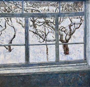 Le suggestive trame di luce che l’inverno, con il freddo o la neve, riesce a creare sono il filo conduttore delle opere in mostra. Gli autori che ne colgono la magia sono, in gran parte, tra i più rappresentativi esponenti, ormai scomparsi, del post-impressionismo russo delle scuole di Mosca e San Pietroburgo, tra cui Georgij Moroz (1937 – 2015), Boris Lavrenko (1920 – 2001), Leonid Vaichlia (1922 – 2013), Maya Kopitzeva (1924 – 2005), Dmitrij Kosmin (1925 – 2003). Si tratta di pittori la cui grande familiarità con la neve e il gelo consente loro di rappresentare la stagione fredda in tutte le sue sfaccettature, dalle sfumature più poetiche a quelle più gioiose. L’inverno, infatti, ha sempre sortito un effetto particolare sull’arte russa in generale, dalla letteratura alla musica: il lenzuolo della neve, che ricopre le molteplici forme del mondo e che, intatta, crocchia come pane fragrante, non è un telo funebre, ma il preludio della rinascita. L’originalità di questo aspetto rende particolarmente interessante l’itinerario pittorico proposto in mostra, che vede esposti soggetti molto diversi tra loro: paesaggi ricoperti da una bianca coltre che rende l’atmosfera incantata, come in Appena nevicato di Moroz, la luce che si rifrange sulla neve creando riflessi inaspettati osservati dalla finestra in Giardino invernale di Maya Kopitzeva, bambini che giocano incuranti del freddo – che par di sentire! – pungente, contesti urbani e piccoli borghi imbiancati, come la poetica Sera nel paese di Vaichlia, figure infagottate avvolte da quello che si percepisce essere un silenzio ovattato.
