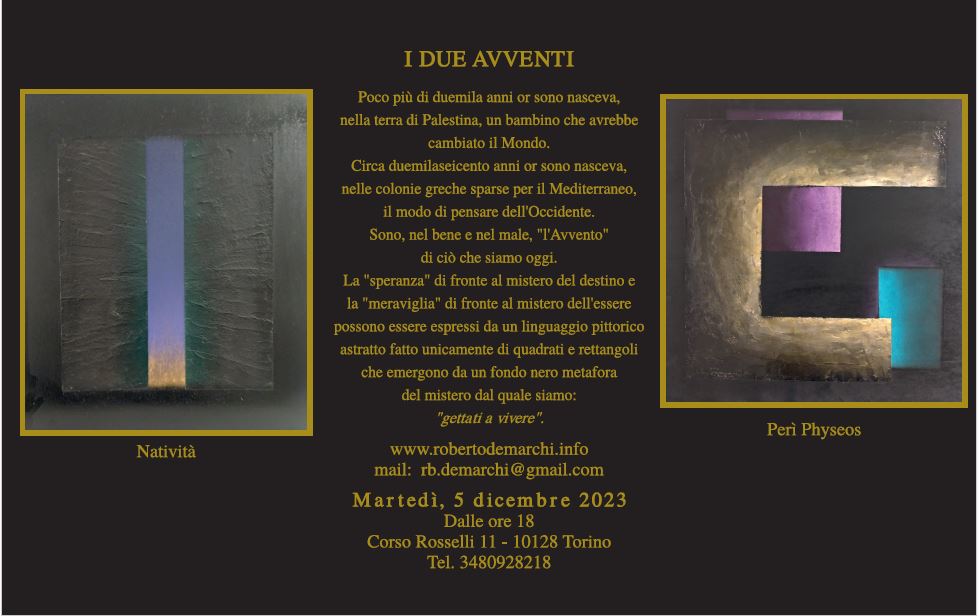 TORINO. “I DUE AVVENTI”, MOSTRA DI ROBERTO DEMARCHI