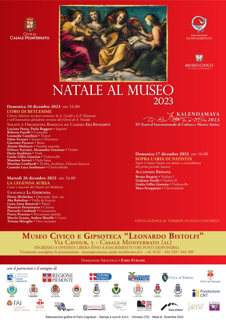 Natale al Museo è una rassegna di concerti ideata dall’Associazione Gli Invaghiti ETS e organizzata in collaborazione con il Museo Civico – Gipsoteca Bistolfi e l’Assessorato alla Cultura di Casale Monferrato. Nata dalla volontà di Fabio Furnari per valorizzare l’importante patrimonio culturale ed artistico conservato al Museo Civico di Casale Monferrato, la manifestazione giunge oggi alla XIII edizione ed è inserita in Kalendamaya – Festival Internazionale di Cultura e Musica Antica.
