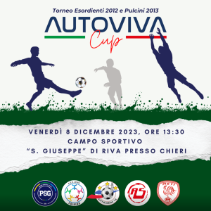 RIVA PRESSO CHIERI – Al via la prima edizione di “Autoviva Cup”, il torneo organizzato dalla concessionaria Autoviva di Riva presso Chieri in collaborazione con il PSG Calcio di Pino Torinese. L’evento coinvolgerà le categorie Esordienti 2012 e Pulcini 2013 e vedrà la partecipazione di cinque squadre del territorio piemontese. L’appuntamento è per venerdì 8 dicembre alle 13:30 presso il campo sportivo “San Giuseppe” di Riva.I