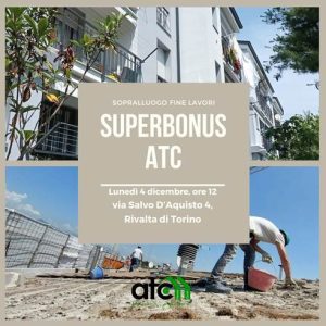 Evento di verifica degli interventi realizzati dall’Atc del Piemonte Centrale grazie al Superbonus 110% in programma lunedì 4 dicembre alle ore 12 in Via Salvo d’Acquisto 4 a Rivalta di Torino. I lavori hanno interessato 4 palazzine realizzate alla fine degli anni ’70 che ospitano complessivamente 79 alloggi.