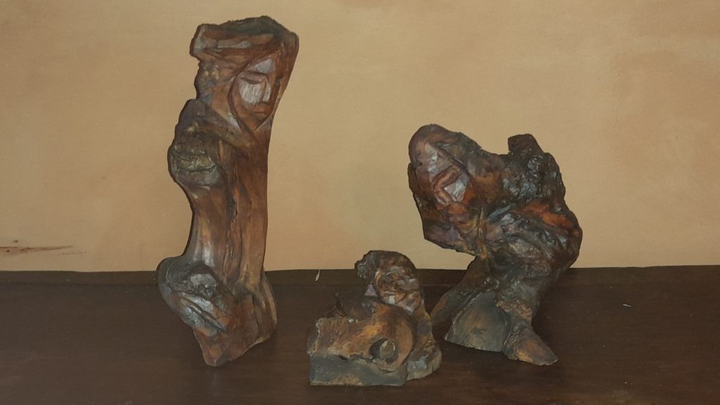 L’interesse della collezionista è stato prioritariamente rivolto non tanto ai diorami riproducenti ambienti più o meno realistici dei luoghi della Natività, quanto alla raffigurazione, data da artigiani diversi e culture diverse, dei tre personaggi della Santa Famiglia: Maria, Giuseppe e il Bambino.