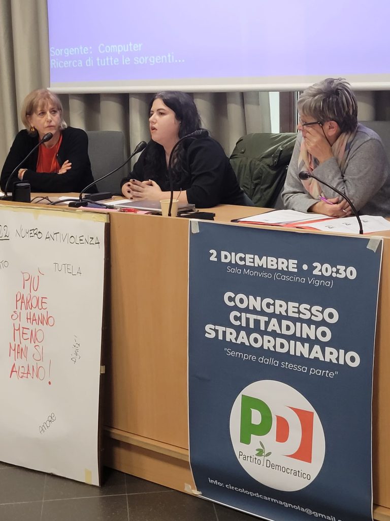 Lo scorso 2 dicembre si è tenuto, presso la Sala Monviso di Cascina Vigna, il Congresso straordinario del PD carmagnolese. Il circolo locale ha rinnovato i propri organi dirigenti, eleggendo come Coordinatrice Sabrina Quaranta e come componenti del Consiglio Direttivo: Paolo Sibona, Oriana Elia, Federico Tosco, Maria Teresa Bertero, Emilio Gamna, Silvana Giorcelli, Giovanni Tosco, Oana Raluca Budau, Carlo Gamna, Silvana Giorcelli.