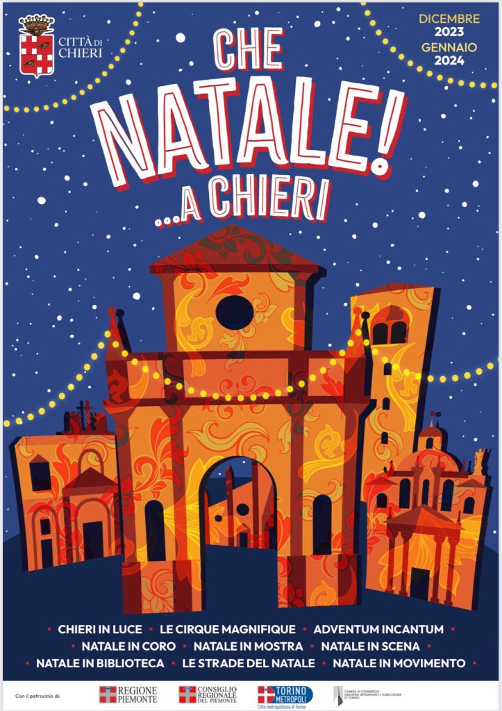 “CHE NATALE!… a Chieri” è un intreccio di itinerari: video mapping sui monumenti della Città, spettacoli itineranti, mostre d’arte, musica sacra, cori e canzoni natalizie, attività per bambini e famiglie.