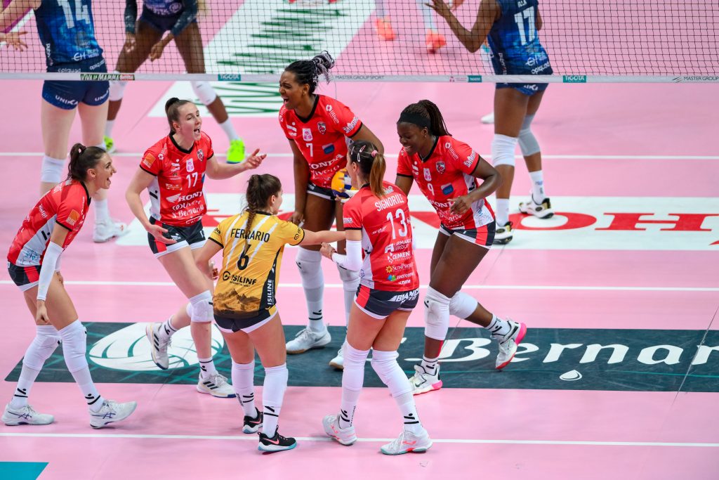 ALLIANZ VERO VOLLEY MILANO: Cazaute ne,Malual, Heyrman ne, Prandi 2, Pusic ne, Rettke 8, Bajema ne, Egonu 16,Daalderop 7, Orro ne, Folie ne, Sylla 7, Candi 12, Castillo (L). All. Gaspari,vice all. Bucaioni