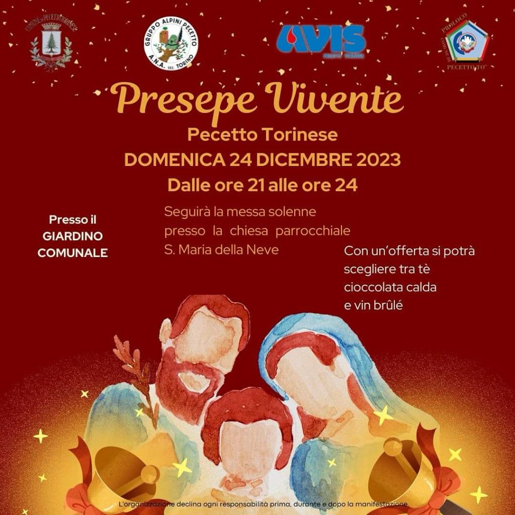 A Pecetto Torinese domenica 24 dicembre Presepe Vivente presso il giardino comunale organizzato dal Comune di Pecetto, Gruppo Alpini, Avis e Pro Loco di Pecetto.