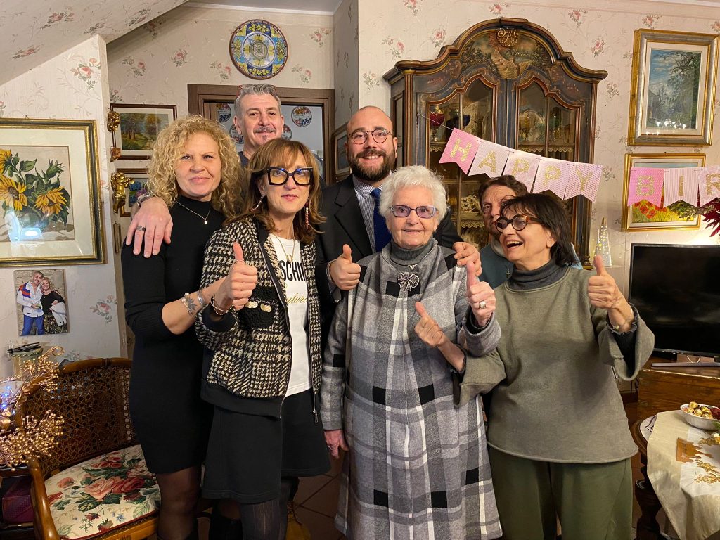 Lucia Trampetti ha solcato il fatidico traguardo del secolo di vita con un entusiasmo raro. Nata ad Udine proprio il giorno di Santa Lucia di 100 anni fa. Ha vissuto lì i primi anni, poi ha sposato giovanissima, nel ‘38, Giovanni Mazzei (classe 1920), militare di origini palermitane.Durante la guerra ha vissuto qualche anno a Palermo dove, purtroppo, si ammalò di tifo rischiando molto. Una volta guarita, si trasferì a Milano per qualche anno fino ad approdare nei primi anni 50 nella nostra Novara. Madre di Ferdinando (classe 1940) purtroppo deceduto, Giorgio (classe 1944) e Daniela (classe 1948). Lucia ha due nipoti: Massimiliano del 1967 e Michela del 1973, due pronipoti e a breve avrà anche la gioia di diventare trisnonna. Ha sempre lavorato nel salone di parrucchiera in corso Cavallotti, dell’amata figlia Daniela, con cui da sempre vive. Lucia ama cucinare, leggere e ballare.Il Presidente del Consiglio Comunale Edoardo Brustia ha portato gli auguri del Sindaco e della città.