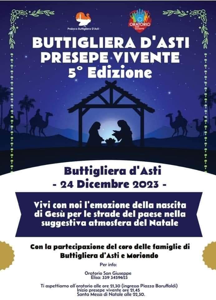 Domenica 24 Dicembre a Buttigliera d’Asti  5° edizione del Presepe Vivente organizzato dalla Pro Loco di Buttigliera D’Asti e Oratorio San Giuseppe
