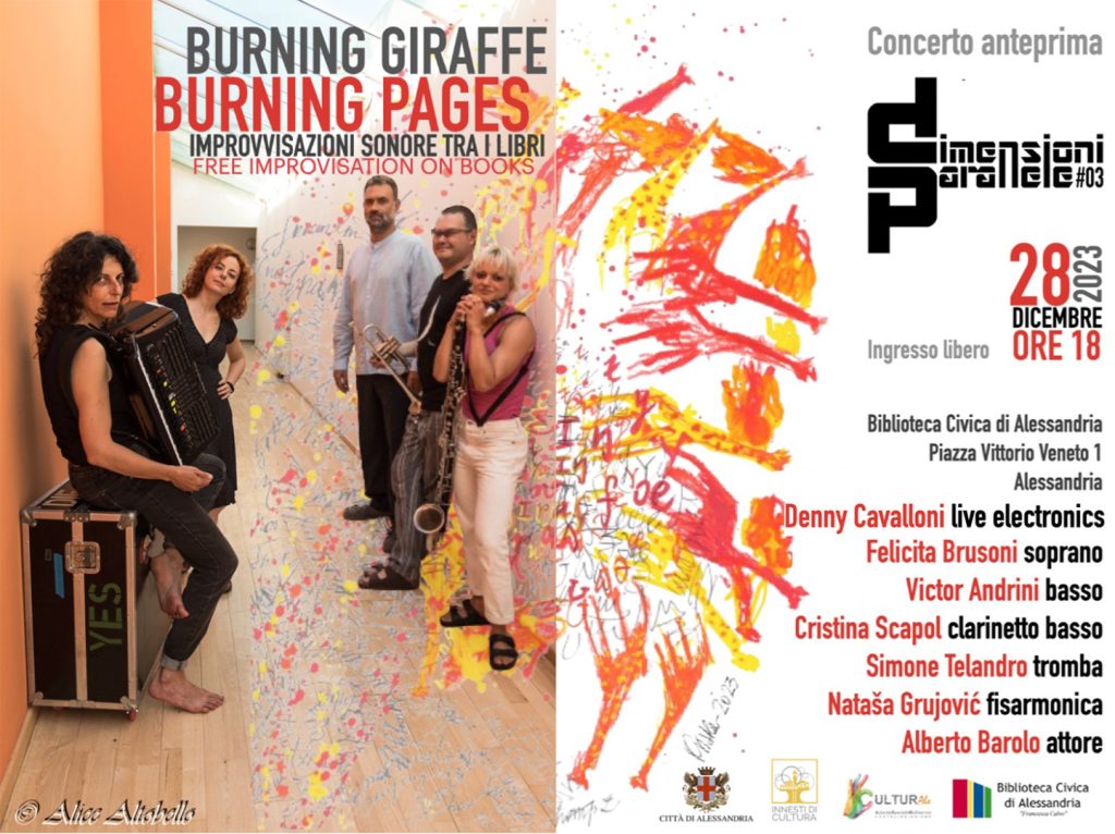 Giovedì 28 dicembre alle 18.00, presso la Biblioteca Civica di Alessandria, ASM Costruire Insieme, il Comune di Alessandria e l’associazione “Innesti di cultura”, presentano “Burning Pages”, evento musicale con ingresso gratuito del gruppo internazionale “Burning Giraffe”.