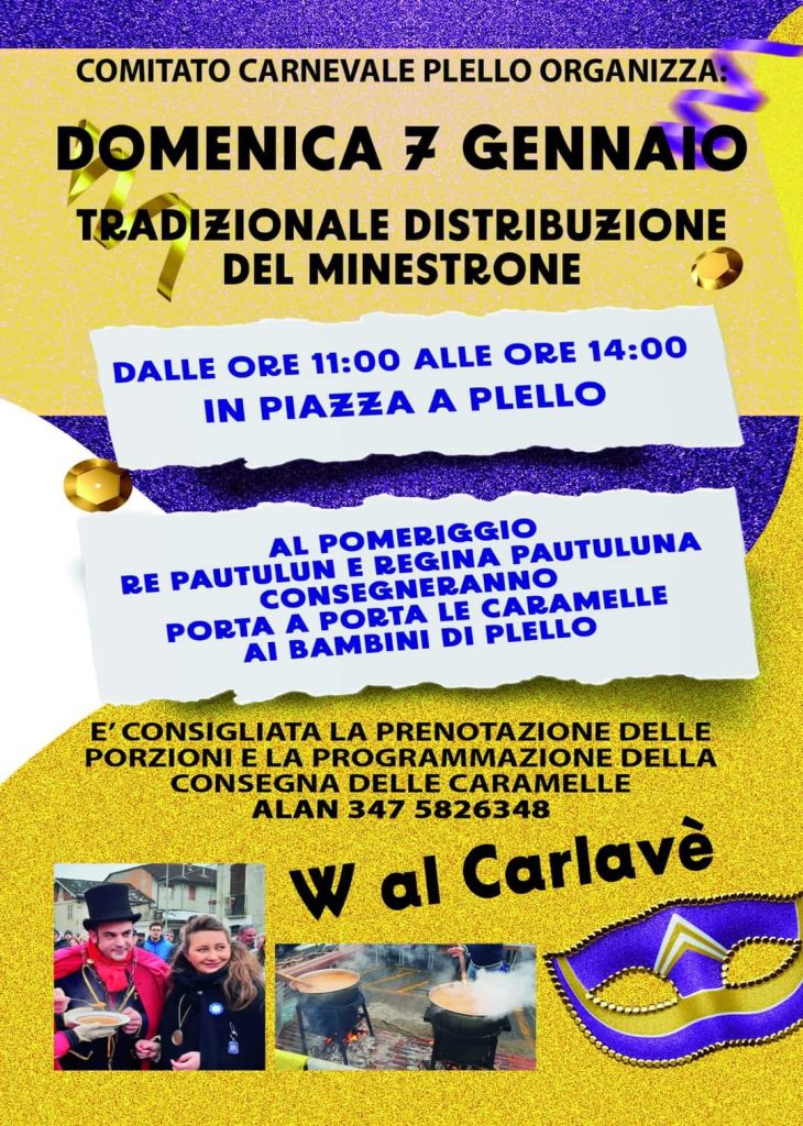 PLELLO. Domenica 7 gennaio Tradizionale distribuzione del minestrone.