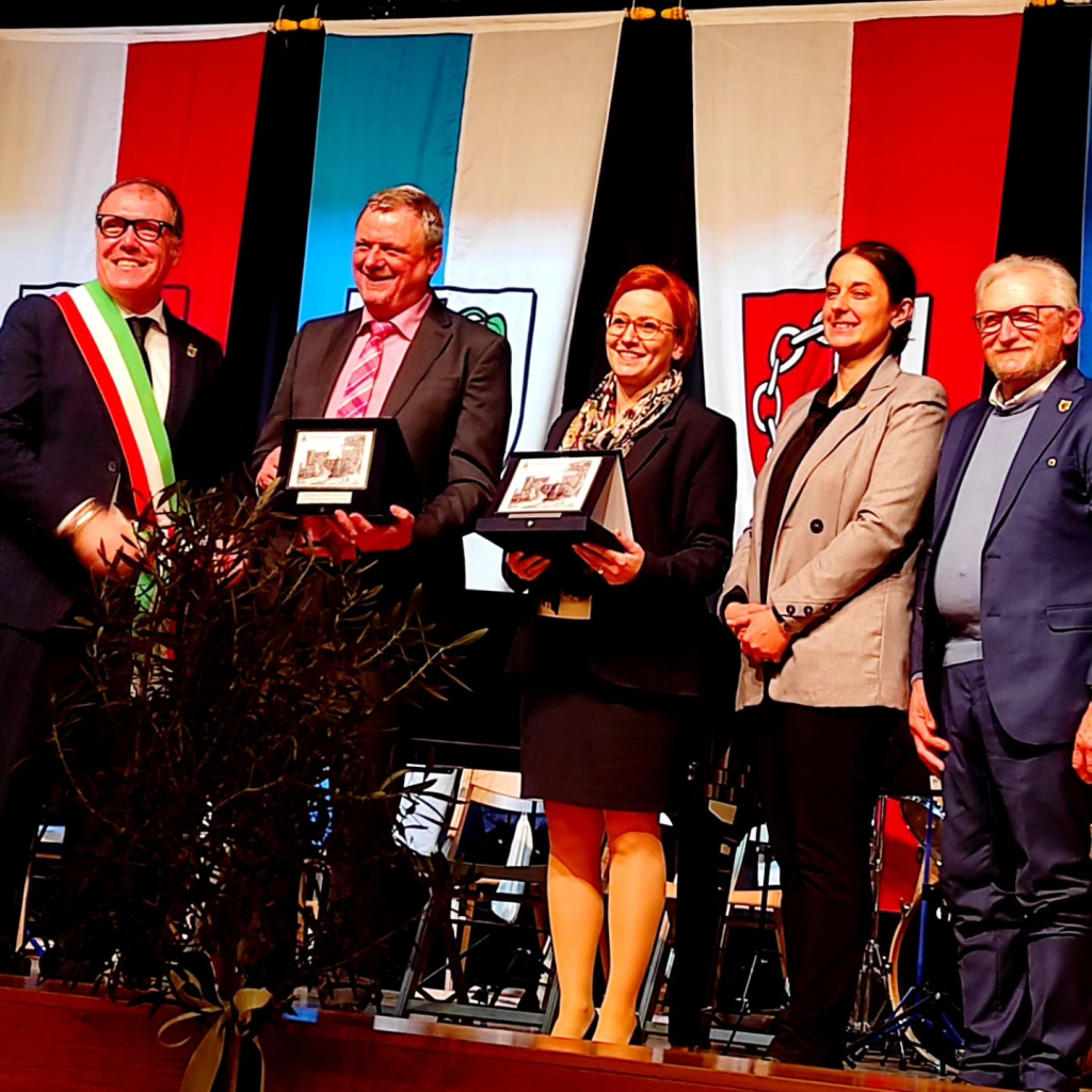 Più di 20 anni del gemellaggio con Costigliole e la città tedesca di Weinsberg nel distretto di Stoccarda. Un gemellaggio sancito nel 2000: grande piacere per il sindaco di Costigliole Enrico Cavallero accogliere il sindaco di Weinsberg Stefan Thoma e signora Beate Makus in visita nel paese, dove qui al castello si sono anche sposati. Da tempo il Comune di Costigliole intrattiene contatti con il distretto tedesco di Weinsberg. Nel corso degli incontri avvenuti fra delegazioni ufficiali delle due comunità sono stati approfonditi i rapporti e individuati i terreni per iniziative comuni, certi che il gemellaggio rappresenti il significato più alto di contributo all’edificazione di un’Europa unita. Tutto questo e molto altro per celebrare non solo un gemellaggio, ma una salda amicizia ad oltre 900 km di distanza. I rappresentanti dei due paesi hanno deciso di consolidare i rapporti di amicizia con il solenne impegno di fratellanza tra le due città, uniti nella volontà di creare un futuro comune di pace e accompagnati dal desiderio di rafforzare l’amicizia tra la Repubblica italiana e la Repubblica Federale Tedesca. Convinti che i legami che uniscono le città del nostro continente rappresentano un elemento fondamentale del cammino verso l’unità d’Europa. Una delegazione ufficiale del Comune di Costigliole composta dal sindaco Enrico Cavallero, dagli assessori Chiara Cirio e Giuseppe Fiore è stata invitata la settimana scorsa dal sindaco dimissionario della città gemellata di Weinsberg, in Germania Stefan Thoma e dal nuovo sindaco Birgit Hannemann alla cerimonia di chiusura del mandato di Stefan, durato oltre 20 anni. Presente all’ evento Simone Solaro, figlio del sindaco emerito di Costigliole Luigi Solaro e una delegazione di costigliolesi, fra cui alcuni rappresentanti delle associazioni: Costigliole Cultura e Symphoniam. Nella fase centrale dell’ intervento del sindaco Cavallero, i ringraziamenti ai due sindaci e ai loro collaboratori per la conduzione del mandato e il successo elettorale. Ad entrambi, gli auguri per la nuova fase di vita che affronteranno. L’occasione per rafforzare i rapporti tra le due città e rinnovare ancora una volta i valori sanciti dal gemellaggio. Il sindaco di Weinsberg, Stefan Thoma è andato in pensione anticipatamente a fine anno per motivi di salute, circa quattro anni prima della fine del suo terzo mandato. Il 64enne lo ha annunciato in una riunione del consiglio locale. Addio al municipio dopo quasi 20 anni, lascerà il posto a Birgit Hannemann. “Vorrei tenere sotto controllo la mia pressione alta riducendo lo stress. Ho ritrovato la pace interiore da quando ho deciso di lasciare la carica di sindaco quest’estate. Un consiglio per il mio successore: Che possa mantenere il suo ottimismo e la sua natura positiva! E godrò della mia nuova libertà e qualità di vita per me e le mie famiglie”. Thoma è nato nelle Alpi del Basso Reno, è sposato per la 2^ volta e ha 3 figli adulti dal primo matrimonio. Prima di essere eletto sindaco all’inizio del 2004, ha lavorato alla Deutsche Bundesbank, tra l’altro come direttore dell’allora filiale di Heilbronn. Vuole dedicare parte del suo tempo lavorando come freelance come amministratore patrimoniale, esecutore testamentario e consulente del dolore. Vuole anche mantenere il suo mandato nel consiglio distrettuale. Questi momenti danno il segno di una Costigliole aperta al mondo, della vivacità culturale che la contraddistingue e della vocazione ai rapporti con altre culture e altri popoli. Alessandra Gallo