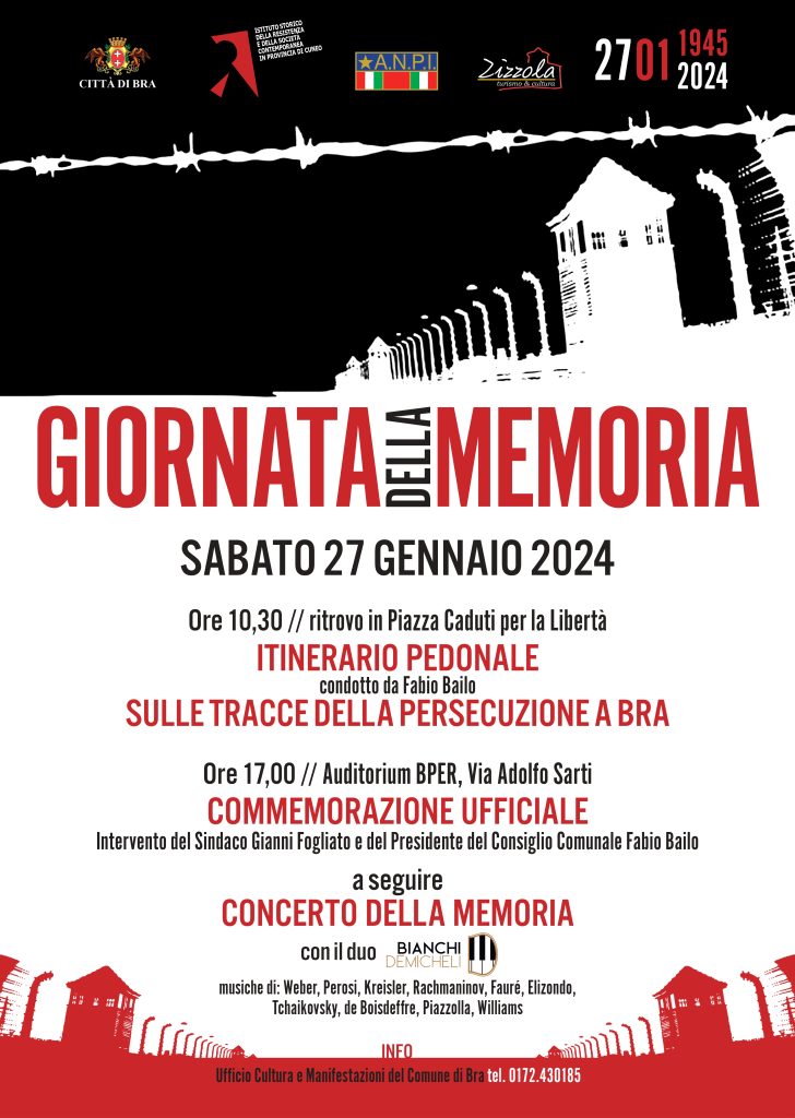 Le iniziative del Giorno della Memoria 2024 sono organizzate dal Comune di Bra in collaborazione con l’Istituto storico della Resistenza e della Società contemporanea di Cuneo, la sezione locale Anpi e l’Associazione Zizzola Turismo & Cultura.