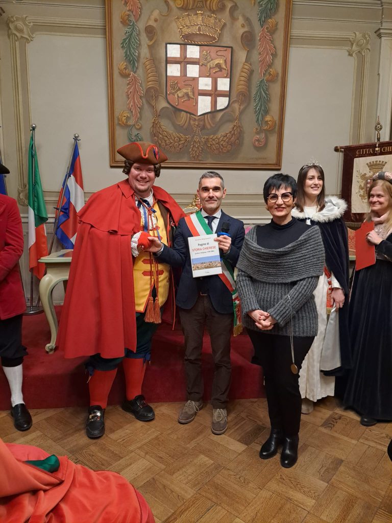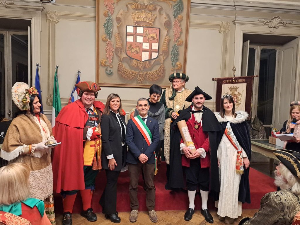 Il Carnevale a Chieri è cominciato venerdì sera con la investitura della Bela Tessioira e del Mangiagrop nella sala del consiglio comunale, presenti Giandoja e Giacometta della Famija Turineisa. Al solito folta la presenza dei personaggi di carnevale provenienti da centri piccoli e grandi della provincia piemontese, che hanno reso omaggio a Nicole Sharon Bonventre e Carlo Carpignano, confermati anche quest’anno nei panni di Tessioira e Mangiagrop. La serata è poi proseguita in Sala Conceria con la musica di Sonia De Castelli e i brindisi finali.