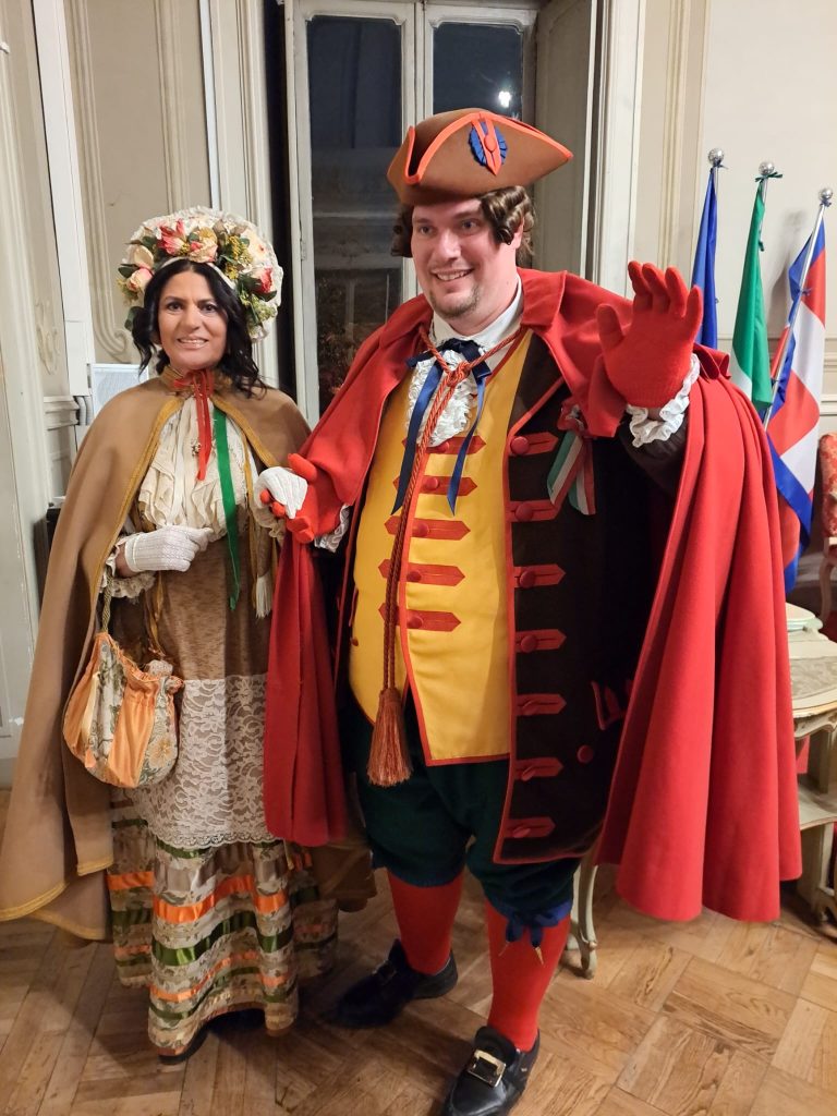 La Pro Chieri ha aperto la stagione dei Carnevali piemontesi con la serata ufficiale della investitura dei suoi personaggi, la Bela Tessioira e il Mangiagrop. Alla presenza di Giandoja e Giacometta della Famija Turineisa, accolti dal sindaco di Chieri Alessandro Sicchiero e dall’assessore alla cultura Antonella Giordano, i riconfermati Nicole Sharon Bonventre e Carlo Carpignano hanno salutato e incontrato in Sala Consiglio le maschere e i gruppi storici proveninenti non solo dal Chierese ma da bel pò di Piemonte e addirittura dalla Valle d’Aosta. Vi offriamo questa galleria fotografica, un omaggio ai personaggi che hanno partecipato e un invito a tutti, grandi e piccoli, a prendere parte ai tanti, tantissimi carnevali in calendario. 100torri.it seguirà gli eventi con una rubrica settimanale di presentazione di ogni festa di carnevale non solo in Piemonte, ma anche in Liguria e Valle d’Aosta.