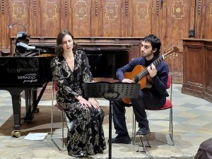 Mario Castelnuovo-Tedesco, l’autore a cui è stato dedicato l’intero concerto, ha composto nella sua lunga carriera (dagli anni ’20 fino al 1968, anno della morte) numerosi concerti per pianoforte, violino, chitarra, violoncello, arpa e oboe, oltre cento composizioni per pianoforte e altrettante per chitarra, più di cento composizioni corali, quasi quattrocento composizioni vocali e un gran numero di composizioni cameristiche e anche di sei opere liriche e quattro balletti. La sua fama è però dovuta principalmente alla composizione di colonne sonore di film hollywoodiani degli anni ’40 e ’50, ambito in cui Castelnuovo-Tedesco si affermò come uno dei più apprezzati dell’epoca. Ad interpretare i brani durante la serata il soprano statunitense Elisabeth Hertzberg, la pianista Simonetta Heger, già docente al Conservatorio di Musica “Giuseppe Verdi” di Milano, e il chitarrista Alessandro Guarneri.