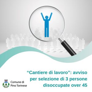 Nei prossimi mesi il Comune di Pino Torinese avvierà il progetto di Cantieri di lavoro – a favore di 3 persone disoccupate prioritariamente residenti a Pino – denominato “In Comune per il bene comune – seconda annualità”, in affiancamento agli operatori del Servizio Tecnico del Comune.