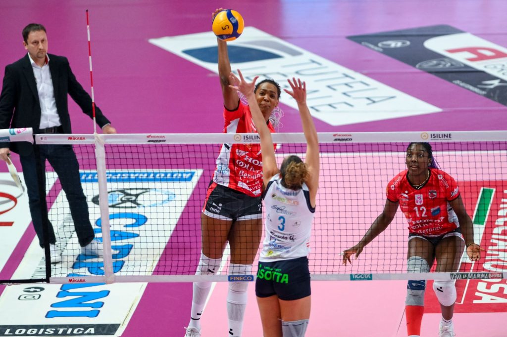 Bellano schiera , Enweonwu opposta a Signorile, Haak e Stigrot schiacciatrici, Sylves e Hall al centro, Scognamillo libero. Pintus sceglie Hancock in palleggio, schiacciatrici di banda Lee e Perinelli, centrali Colombo e Lohuis Jul , Smarzek schiacciatrice opposta, De Bortoli libero.